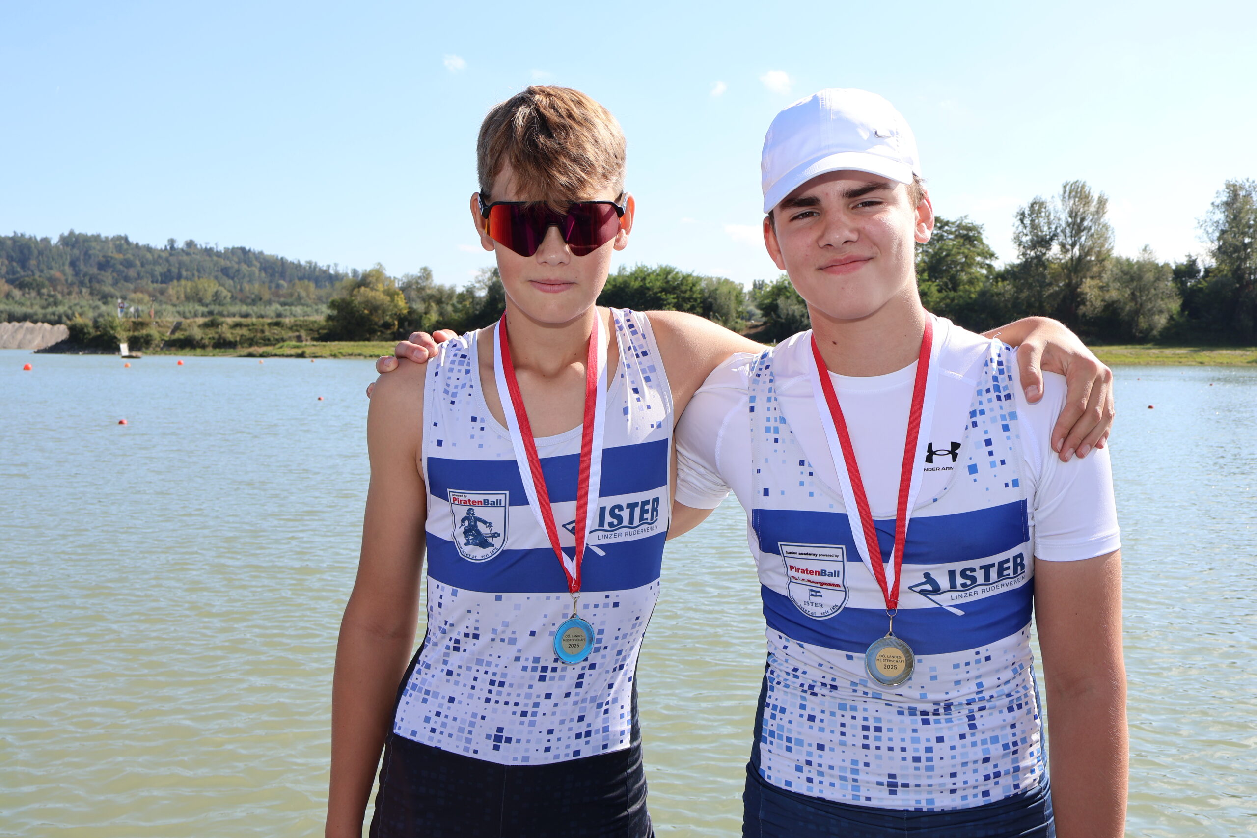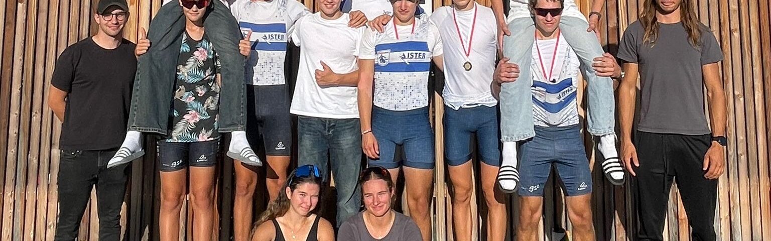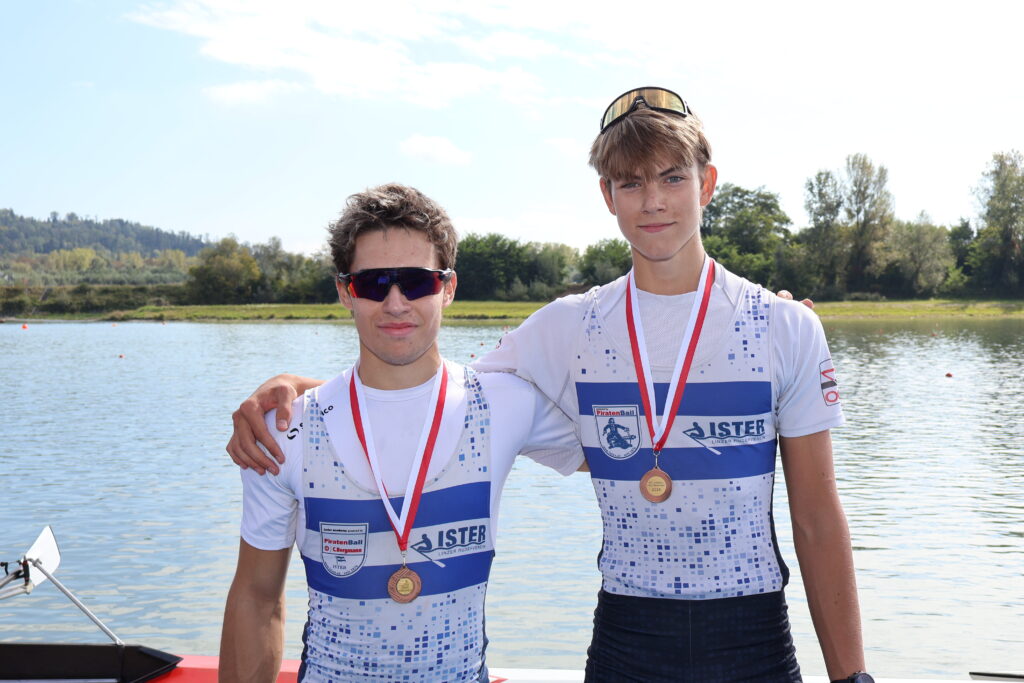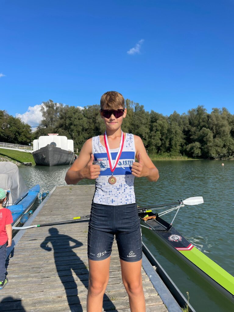 Die Einzelkämpfer*innen haben sich, wie immer, den größten Konkurrenzfeldern stellen müssen. Hier waren einige sehr spannende Zielsprints zu sehen, was für emotionale Höhen und Tiefen sorgte. Schüler*innen Finnian Campbell, Matthias Handl und Franziska Leibetseder, sowie Junior*innen David Aigner, Anna Eliskases Moritz Ganhör, Marlene Kühr und Sophie Milton haben sich dieser Herausforderung gestellt. Franziska und Sophie haben gegen hochkarätige Konkurrenz das Stockerl knapp verpasst. Justus Gschaider schaffte es auch ins A-Finale der offenen Klasse, wo er am 5. Platz ins Ziel kam. Aber zweimal kam Bronze zu Ister durch die Leistungen von Finnian Campbell (SCHM 1x) und Fabian Gillhofer (M 1x).
